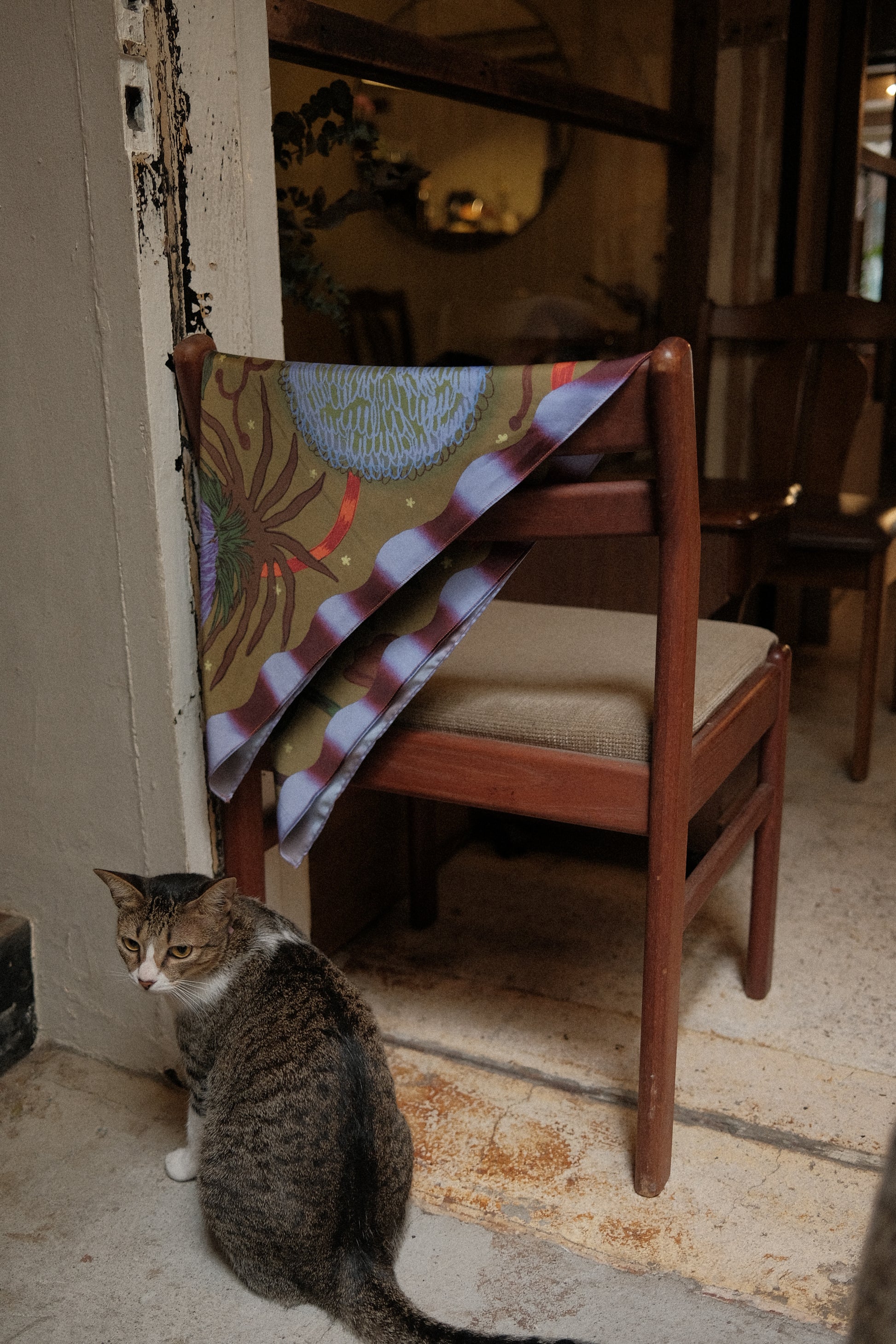 Wear it however you like: as a headscarf, around your neck, or tied to your bag. It’s a little piece of art to carry with you, wherever the day takes you.
